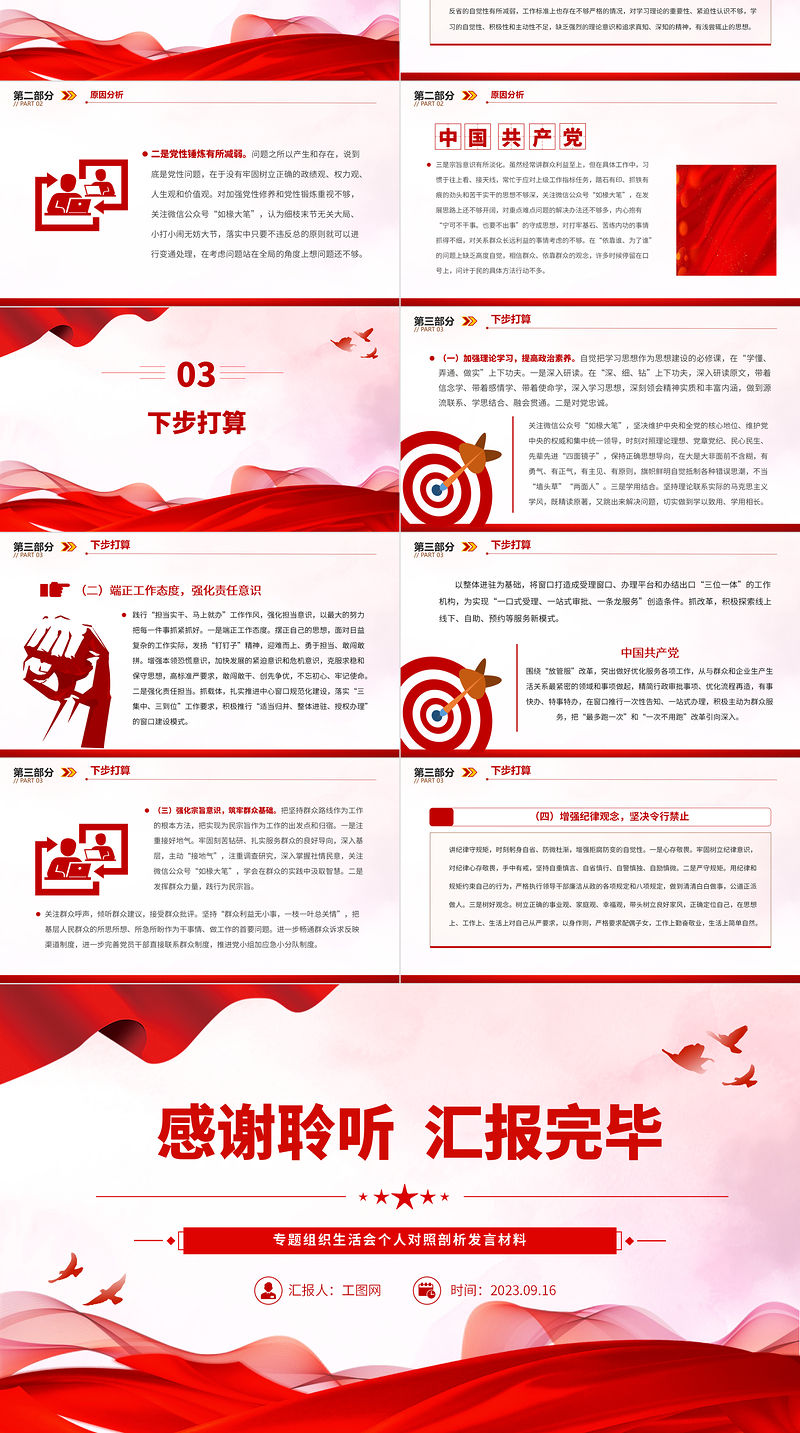 感謝聆聽 匯報完畢專題組織生活會個人對照剖析發言材料