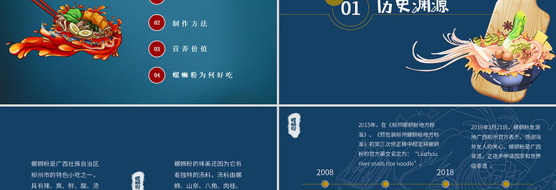 2022螺螄粉PPT藍色卡通插畫風螺螄粉美食餐飲推廣課件模板