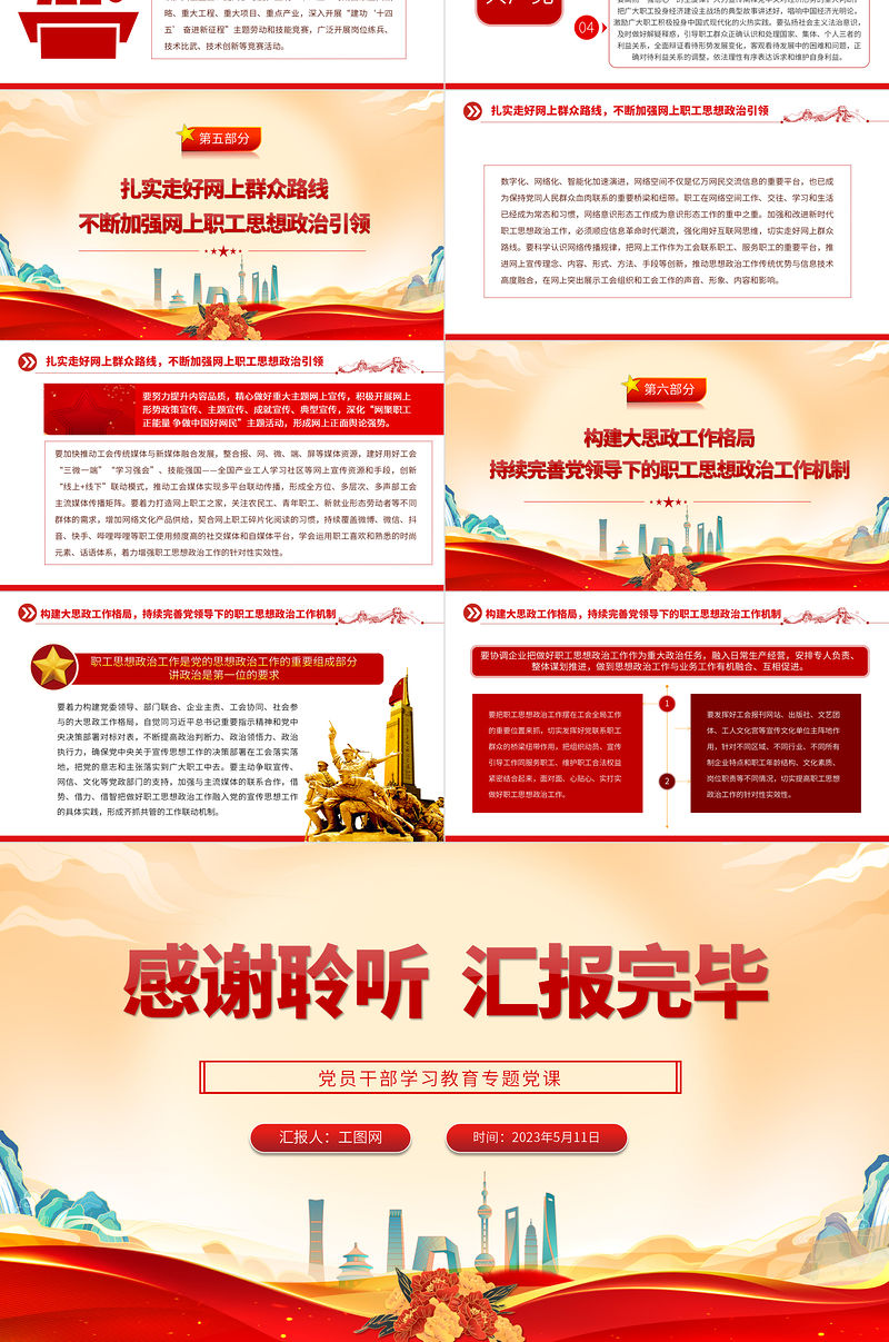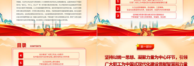 工圖網提供2023筑牢廣大職工投身中國式現代化的共同思想基礎PPT大氣精美風黨員干部學習教育專題黨課課件供會員免費下載。更多精彩黨課PPT素材,盡在工圖網。