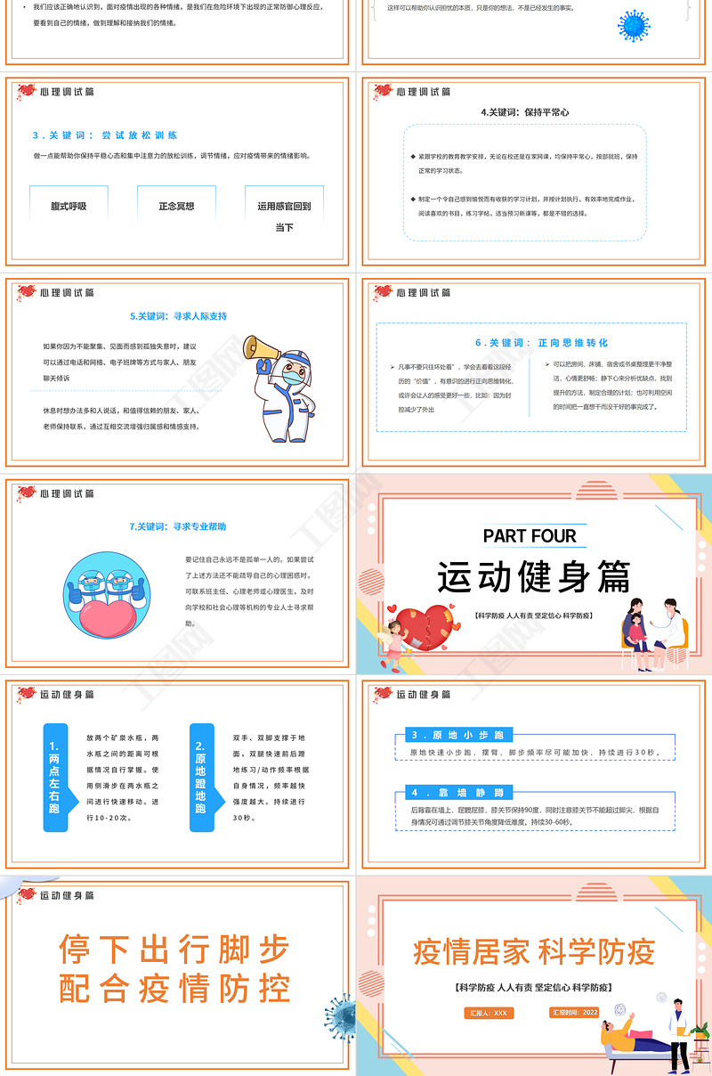 一、理性認(rèn)知篇 二、科學(xué)防護(hù)篇 三、心理調(diào)適篇 四、運(yùn)動(dòng)健身篇