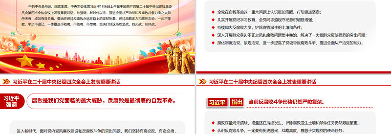 腐敗存量尚未清除,增量還在持續發生,鏟除腐敗滋生土壤和條件任務仍然艱巨繁重。 認識反腐敗斗爭,一定要有歷史眼光、戰略高度,著眼于實現黨的使命任務。 反腐敗斗爭必須堅定不移,任何猶豫動搖、松懈手軟或半途而廢,都將犯顛覆性錯誤。 要堅決澄清各種錯誤認識,廓清思想迷霧,進一步堅定反腐敗斗爭的決心和信心。當前反腐敗斗爭形勢仍然嚴峻復雜。習近平在二十屆中央紀委四次全會上發表重要講話