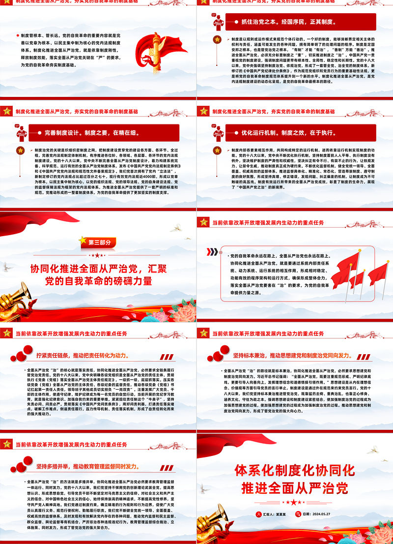 體系化制度化協同化推進全面從嚴治黨PPT簡約風全黨開展黨紀學習教育工作課件模板 Array