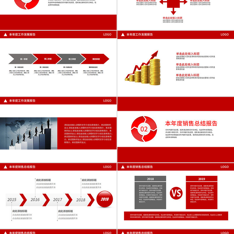 2019紅色工作總結銷售工作匯報PPT模板幻燈片 Array