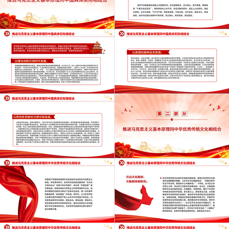 2022開辟馬克思主義中國化時代化新境界PPT黨政精美風黨員干部學習教育專題黨課黨建課件包含