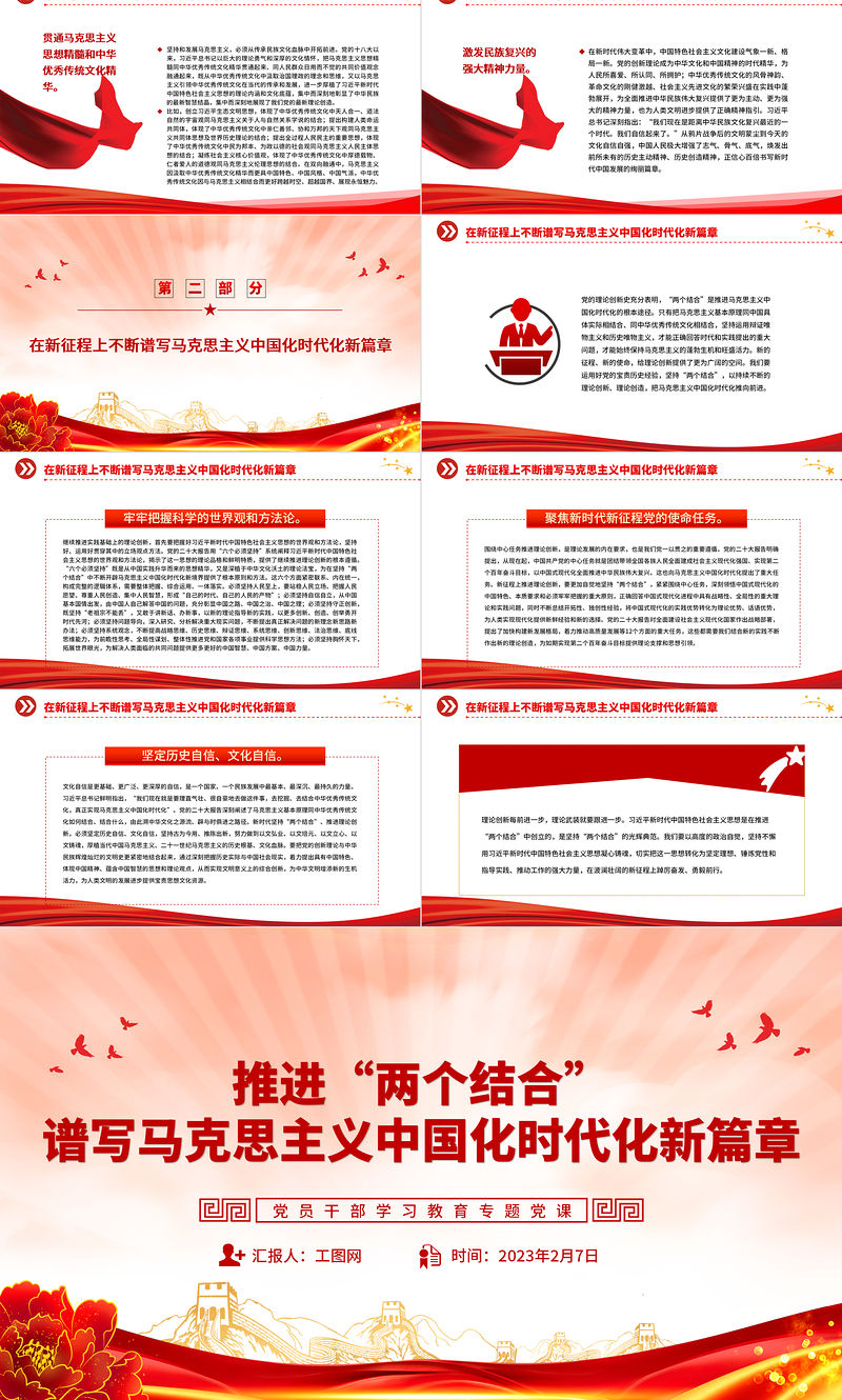 2023推進“兩個結(jié)合”譜寫馬克思主義中國化時代化新篇章PPT大氣精美風黨員干部學習教育專題黨建課件