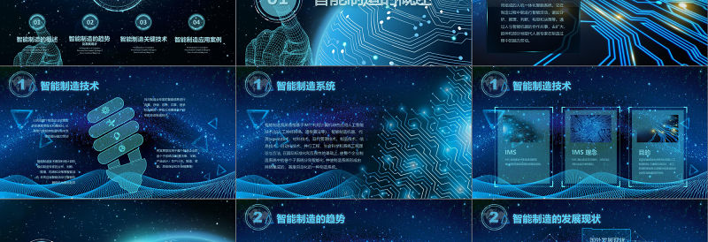 智能制造的發展現狀2美國歐盟日本日本于1989年提出智能制造系統,且于1994年啟動了先進制造國際合作研究項目,其中包括公司集成和全球制造、制造知識體系、分布智能系統控制、快速產品實現的分布智能系統技術等。美國于1992年執行新技術政策,大力支持包括信息技術和新的制造工藝,智能制造技術在內的關鍵重大技術。歐盟于1994年啟動新的研發項目,選擇了39項核心技術,其中信息技術、分子生物學和先進制造技術中均突出了智能制造技術的地位。國外發展現狀