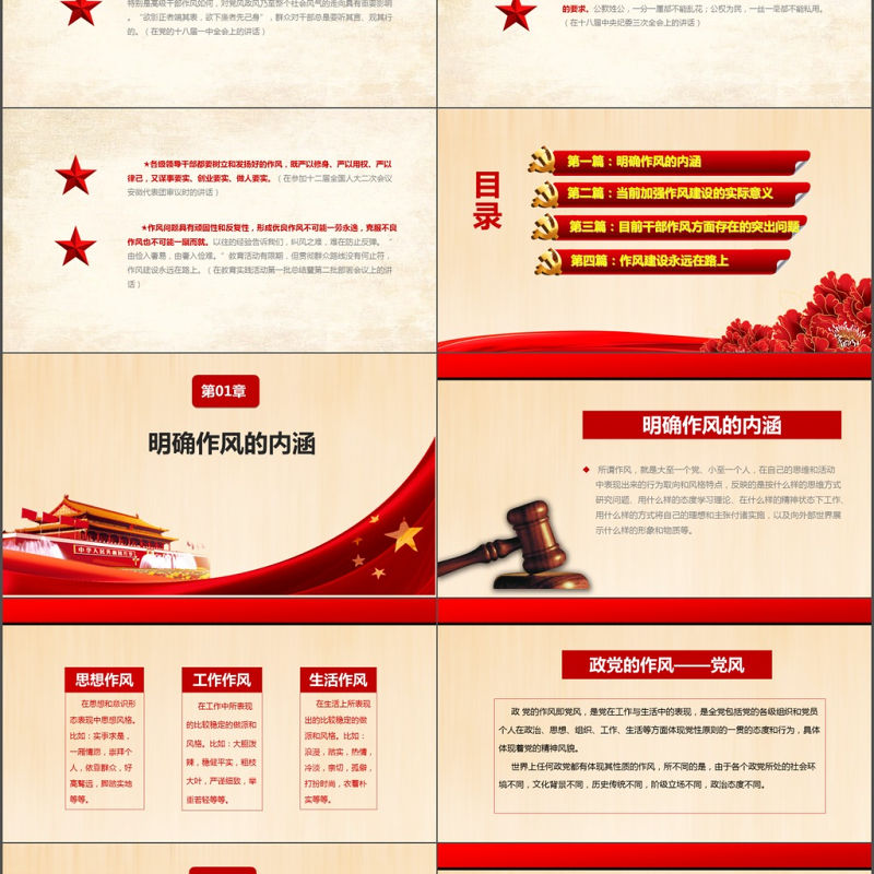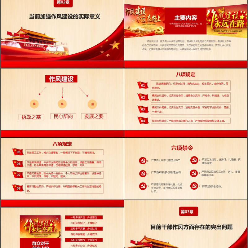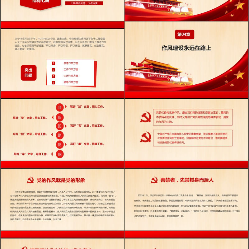 紅色大氣作風建設永遠在路上黨政PPT模板