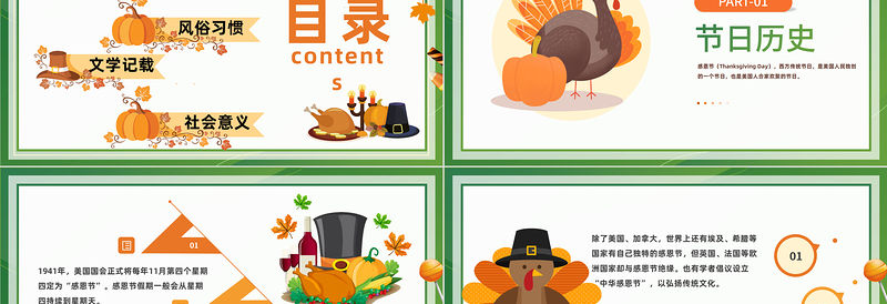 節日歷史PART-01感恩節(Thanksgiving Day),西方傳統節日,是美國人民獨創的一個節日,也是美國人合家歡聚的節日。