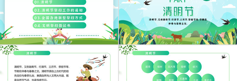 CONTENTS01.清明節02.清明節祭掃工作的通知03.全國各地新型祭掃方式04.文明祭掃倡議書