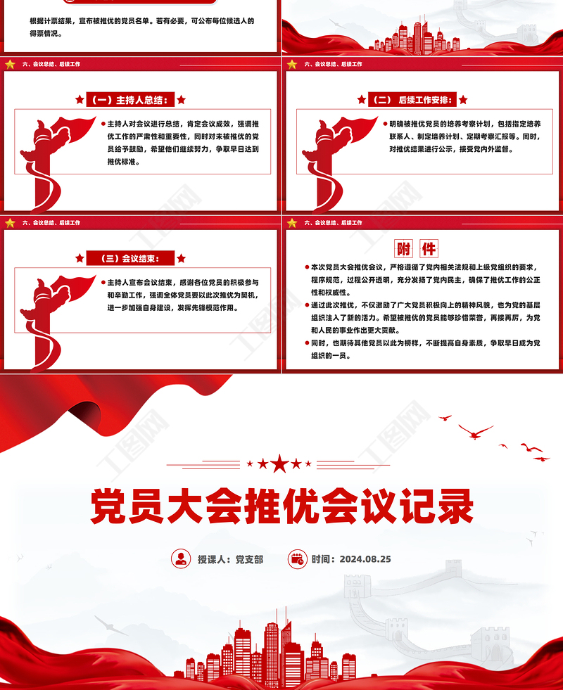 工圖網(wǎng)提供黨政風(fēng)黨員大會(huì)推優(yōu)會(huì)議記錄PPT課件模板供會(huì)員免費(fèi)下載。更多精彩黨課PPT素材,盡在工圖網(wǎng)。