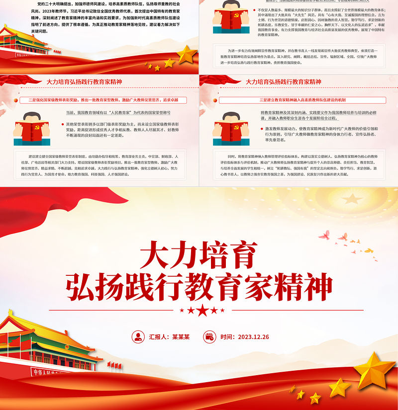 大力培育弘揚踐行教育家精神PPT精美大氣加強師德師風建設黨課 Array