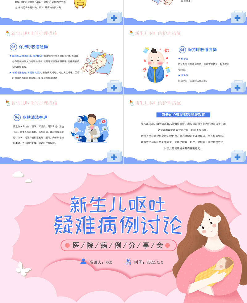 2022新生兒嘔吐疑難病例討論PPT卡通風醫院病例分享會課件模板