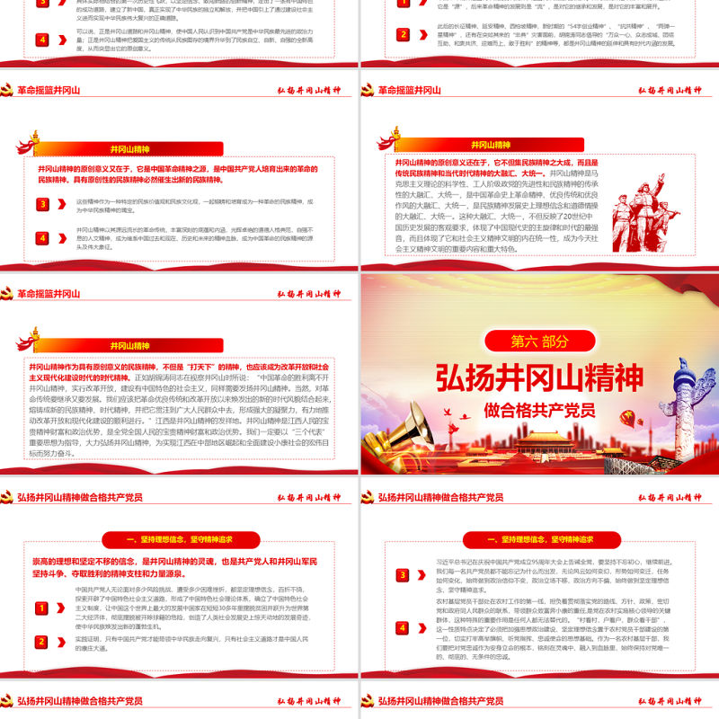 工圖網(wǎng)提供原創(chuàng)弘揚(yáng)井岡山精神不忘初心做新時(shí)代合格黨員PPT-含講稿供會(huì)員免費(fèi)下載。更多精彩黨課PPT素材,盡在工圖網(wǎng)。