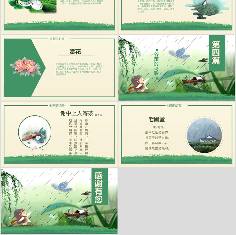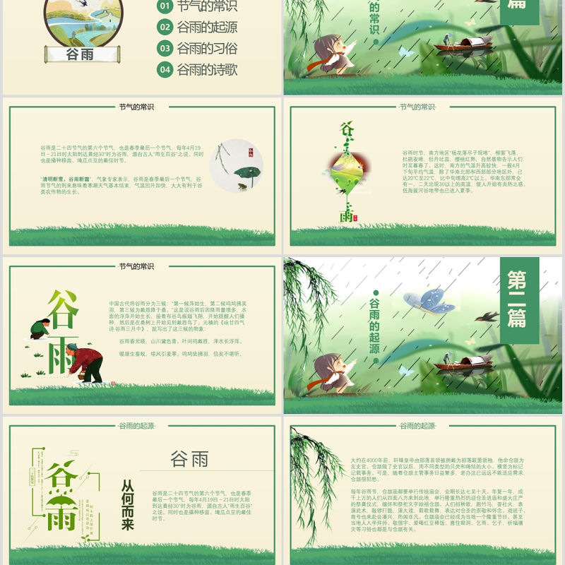 插畫風二十四節氣之谷雨主題班會PPT模板
