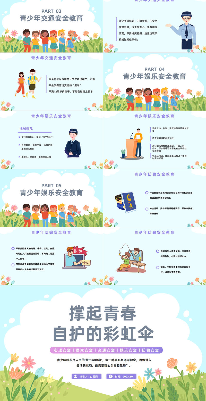 2023撐起青春自護(hù)的彩虹傘PPT卡通風(fēng)青少年自護(hù)教育學(xué)習(xí)主題班會課件模板下載