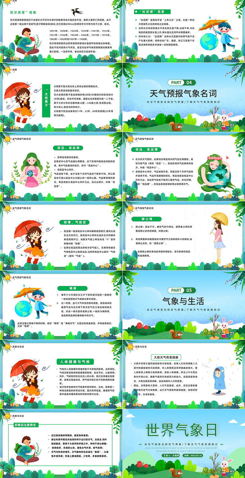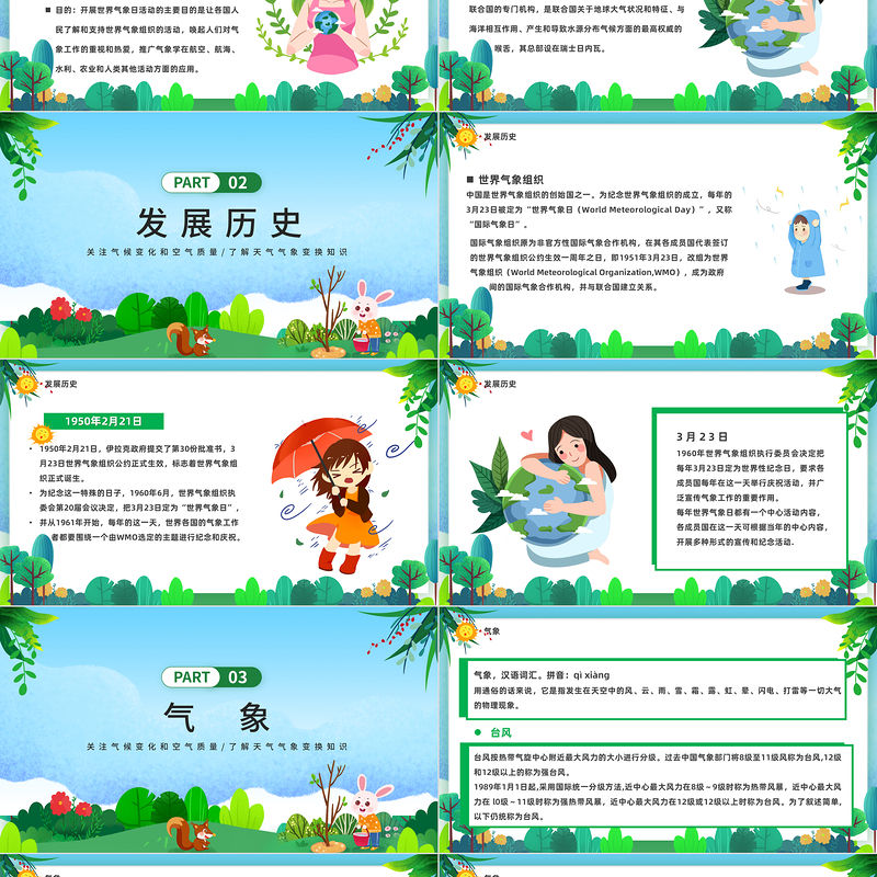 2023世界氣象日PPT綠色卡通風(fēng)關(guān)注氣候變化和空氣質(zhì)量世界氣象日知識(shí)介紹課件模板下載 Array