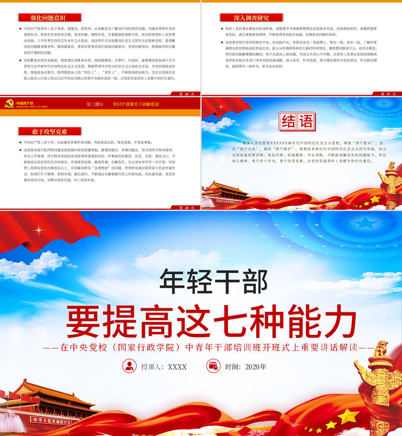 大氣黨建風(fēng)中青年干部培訓(xùn)班講話年輕干部要提高七種能力黨課PPT