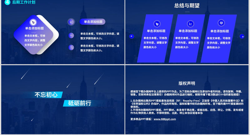版權(quán)聲明感謝您下載辦圖網(wǎng)平臺上提供的PPT作品,為了您和辦圖網(wǎng)以及原創(chuàng)作者的利益,請勿復(fù)制、傳播、銷售,否則將承擔法律責任!辦圖網(wǎng)將對作品進行維權(quán),按照傳播下載次數(shù)進行十倍的索取賠償! 1.在辦圖網(wǎng)出售的PPT模板是免版稅類(RF:Royalty-Free)正版受《中國人民共和國著作法》和《世界版權(quán)公約》的保護,作品的所有權(quán)、版權(quán)和著作權(quán)歸辦圖網(wǎng)所有,您下載的是PPT模板素材的使用權(quán)。2.不得將辦圖網(wǎng)的PPT模板、PPT素材,本身用于再出售,或者出租、出借、轉(zhuǎn)讓、分銷、發(fā)布或者作為禮物供他人使用,不得轉(zhuǎn)授權(quán)、出賣、轉(zhuǎn)讓本協(xié)議或者本協(xié) 更多精品PPT模板:www.888ppt.com
