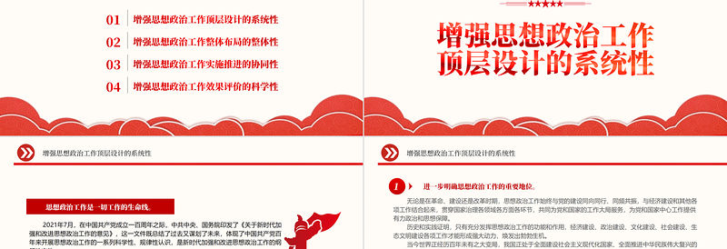 2022完善新時代思想政治工作體系建構PPT紅色精美風黨員干部學習教育專題黨課黨建課件 Array