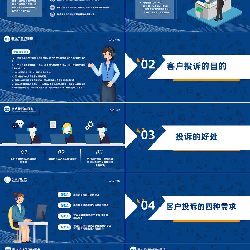 LOGO HERE投訴可以指出公司的缺點投訴是提供你繼續為他服務的機會投訴可以加強他成為公司的長期理性顧客投訴可以使公司產品更好地改進投訴可以提高處理投訴人員的能力