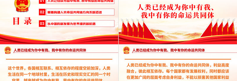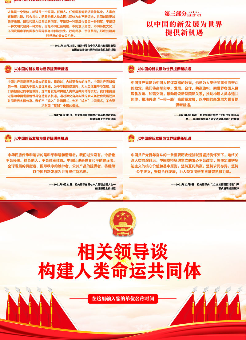 相關領導談構建人類命運共同體PPT紅色大氣風黨員干部黨史學習專題教育黨課課件模板