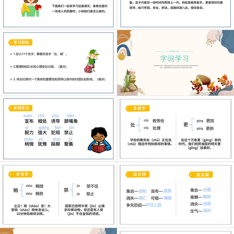 宣布 相處 誘導(dǎo) 舔嘴角 毅力 強(qiáng)大 犯規(guī) 禁止稍微 猶豫 跺腳 聚集 字詞學(xué)習(xí)