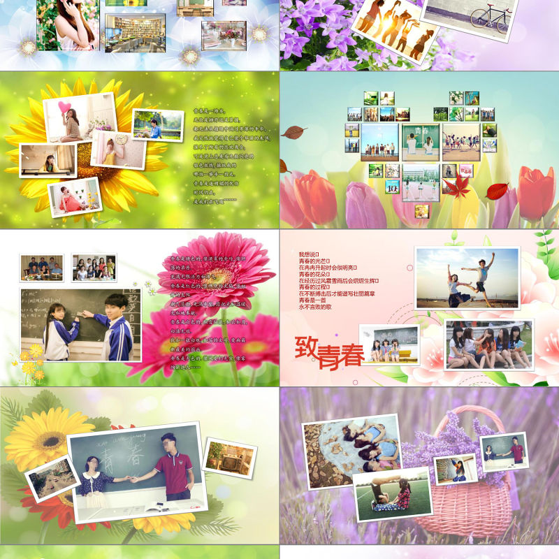 致青春 聯誼會 開場片頭 畢業紀念冊PPT 同學聯誼會 同學錄 視頻片頭 懷舊風格同學會片頭 同學會視頻 電子相冊 老電影風格 同學聚會PPT模板 薰衣草 清新 寫真集 Array
