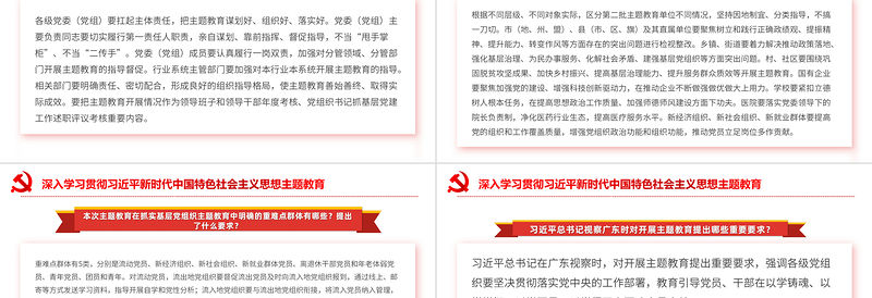 深入學(xué)習(xí)貫徹習(xí)近平新時代中國特色社會主義思想主題教育習(xí)近平總書記在廣東視察時,對開展主題教育提出重要要求,強調(diào)各級黨組織要堅決貫徹落實黨中央的工作部署,教育引導(dǎo)黨員、干部在以學(xué)鑄魂、以學(xué)增智、以學(xué)正風(fēng)、以學(xué)促干上下功夫見實效。