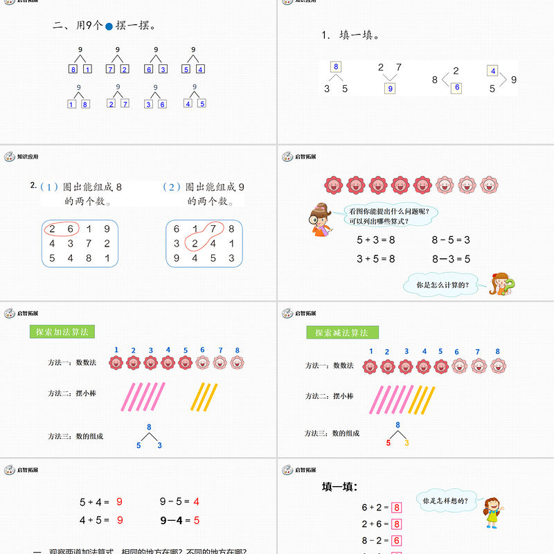 人教版小學(xué)一年級(jí)數(shù)學(xué)上冊(cè)第五課第二課時(shí):6~10的認(rèn)識(shí)和加減法——8和9(含配套教案)課件PPT