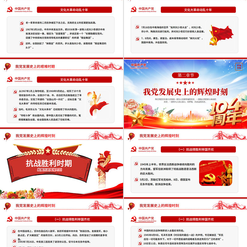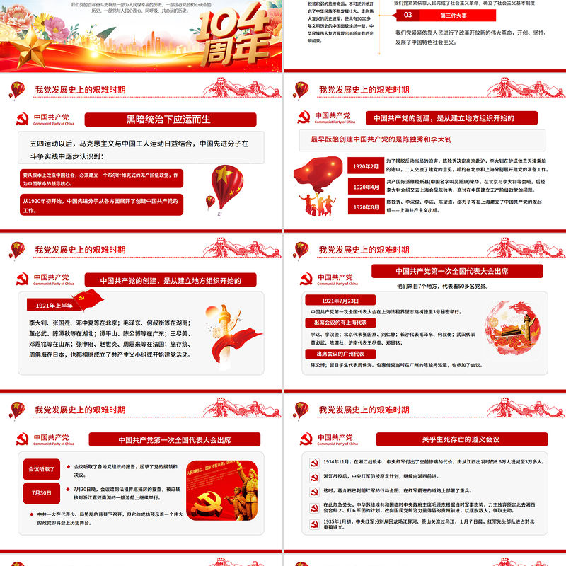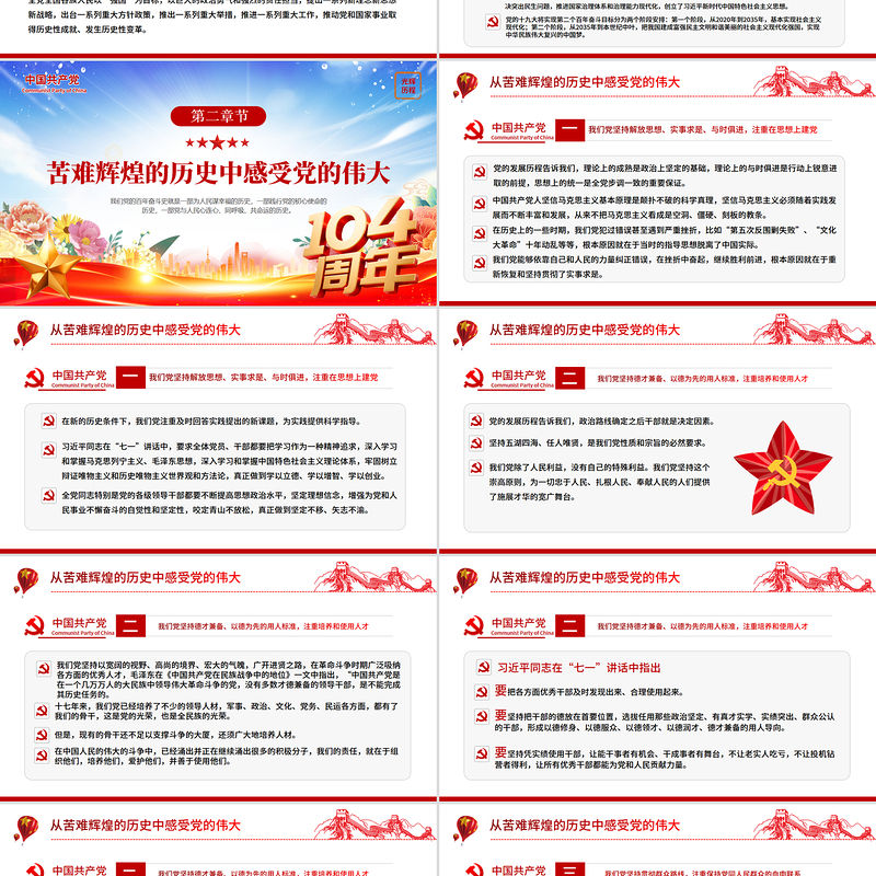 簡(jiǎn)潔精美黨的光輝歷程PPT建黨104周年黨史學(xué)習(xí)教育黨課課件 Array