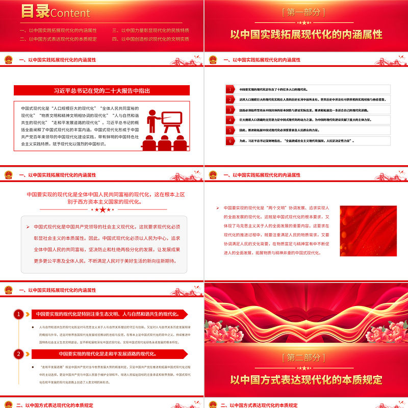 目錄一、以中國實踐拓展現代化的內涵屬性 二、以中國方式表達現代化的本質規定Content三、以中國力量彰顯現代化的民族特質 四、以中國創造標識現代化的文明實質