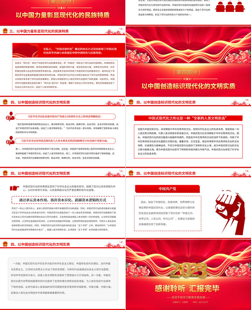 2023中國式現代化的原創性貢獻PPT大氣精美風黨員干部學習教育專題黨課課件 Array