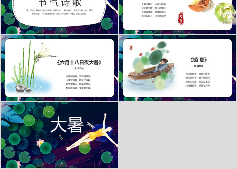 清新傳統二十四節氣之大暑PPT模板