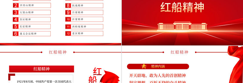 紅船精神開天辟地、敢為人先的首創精神堅定理想、百折不撓的奮斗精神立黨為公、忠誠為民的奉獻精神