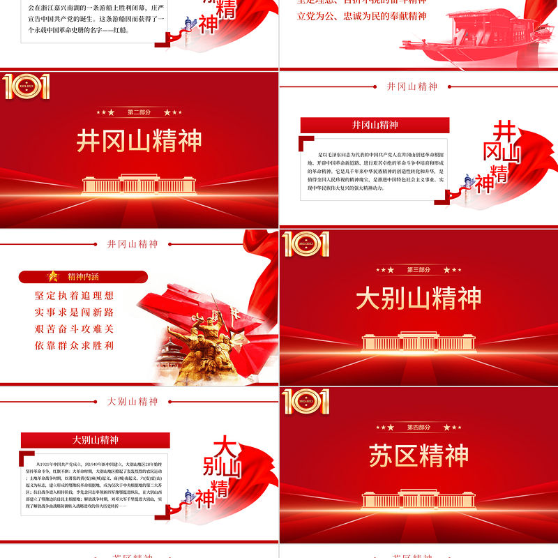 弘揚革命精神牢記使命擔當PPT紅色黨政風慶祝中國共產黨成立101周年專題黨史學習教育黨課課件模板 Array