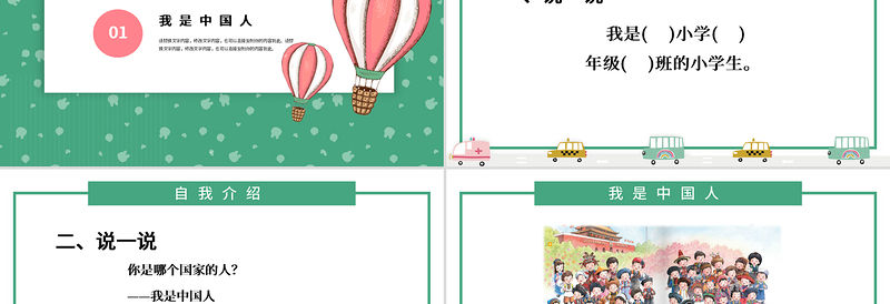 自我介紹你是哪個國家的人?——我是中國人你長大后想干什么?——我想當(dāng)一名畫家、醫(yī)生、警察、運(yùn)動員、歌手、舞蹈演員……二、說一說