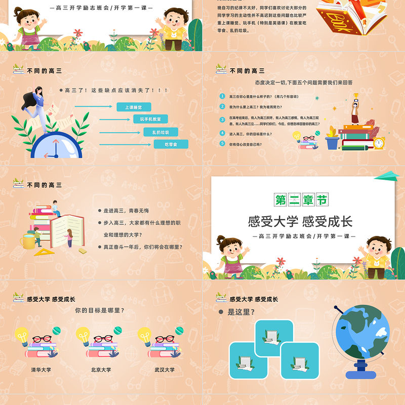 2023走進高三青春無悔PPT卡通插畫風高三開學第一課高三開學離職班會課件模板 Array