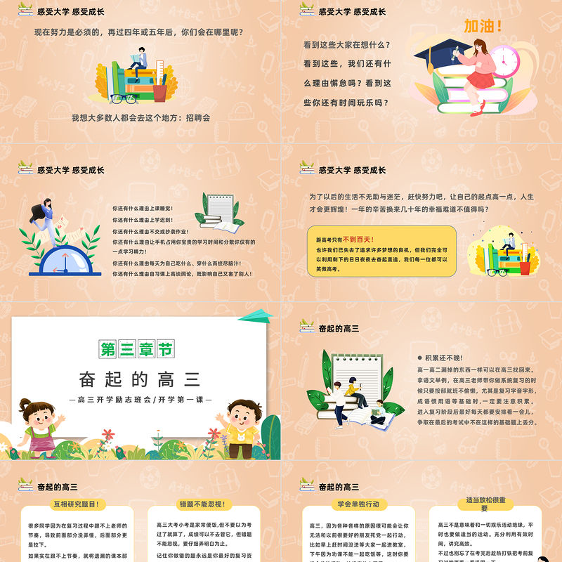工圖網提供2023走進高三青春無悔PPT卡通插畫風高三開學第一課高三開學離職班會課件模板供會員免費下載。更多精彩黨課PPT素材,盡在工圖網。