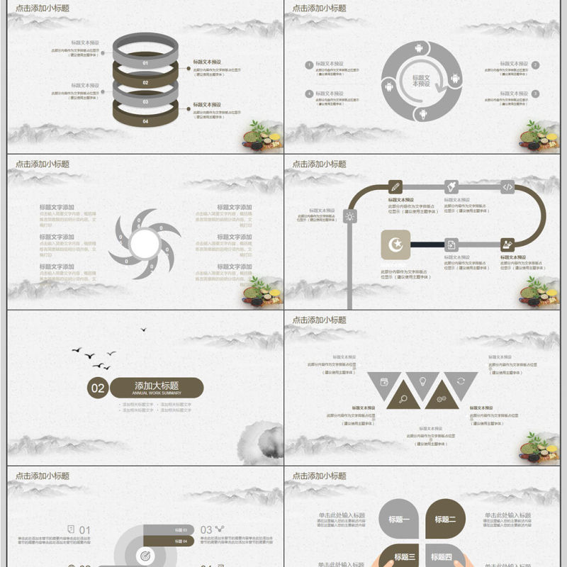 2022中國傳統文化之中醫養生創意水墨風中醫養生介結通用PPT模板包含