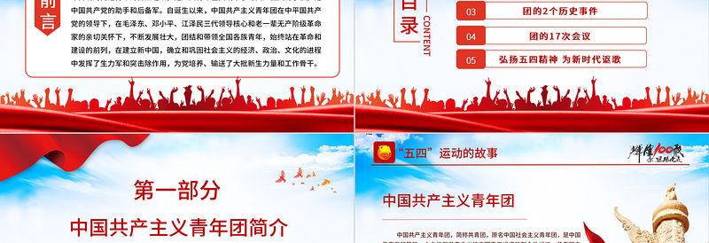 慶建團(tuán)百年學(xué)團(tuán)史知識(shí)PPT紅色精品慶祝共青團(tuán)團(tuán)史100周年專題黨課課件模板 Array