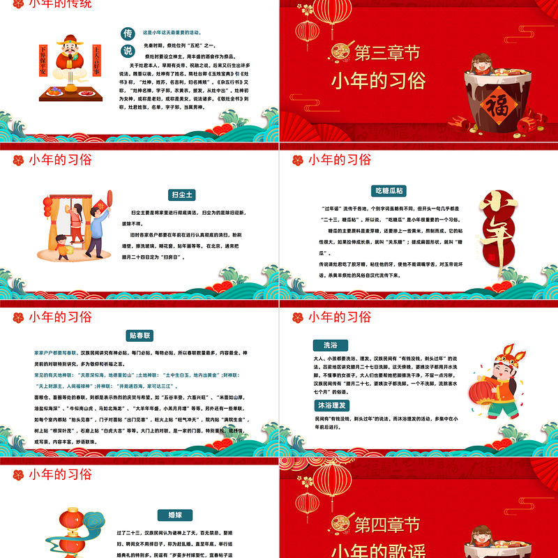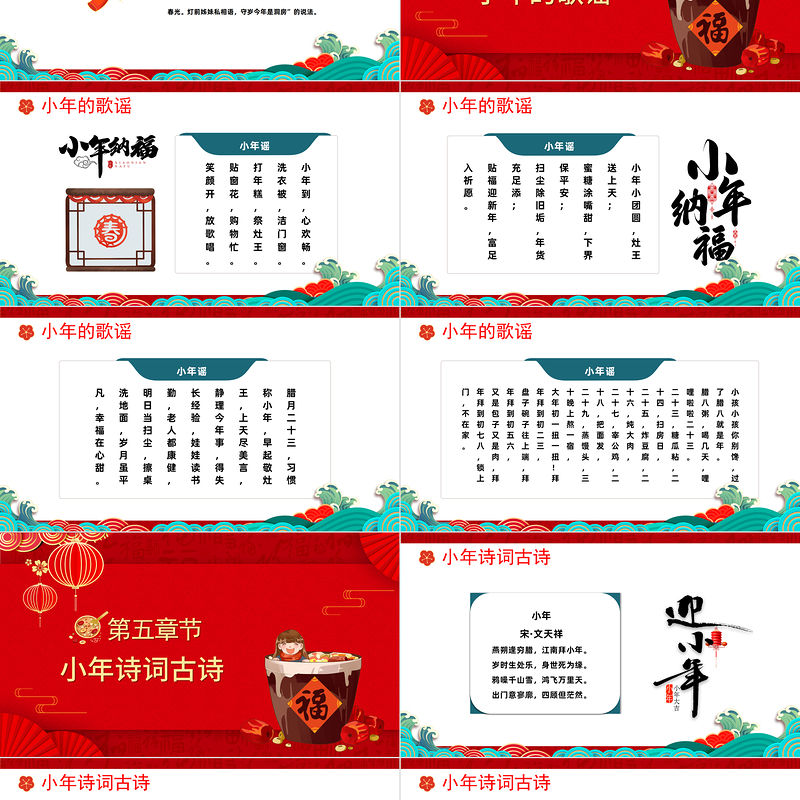 2023小年納福PPT國潮風小年納福文化習俗介紹課件模板 Array