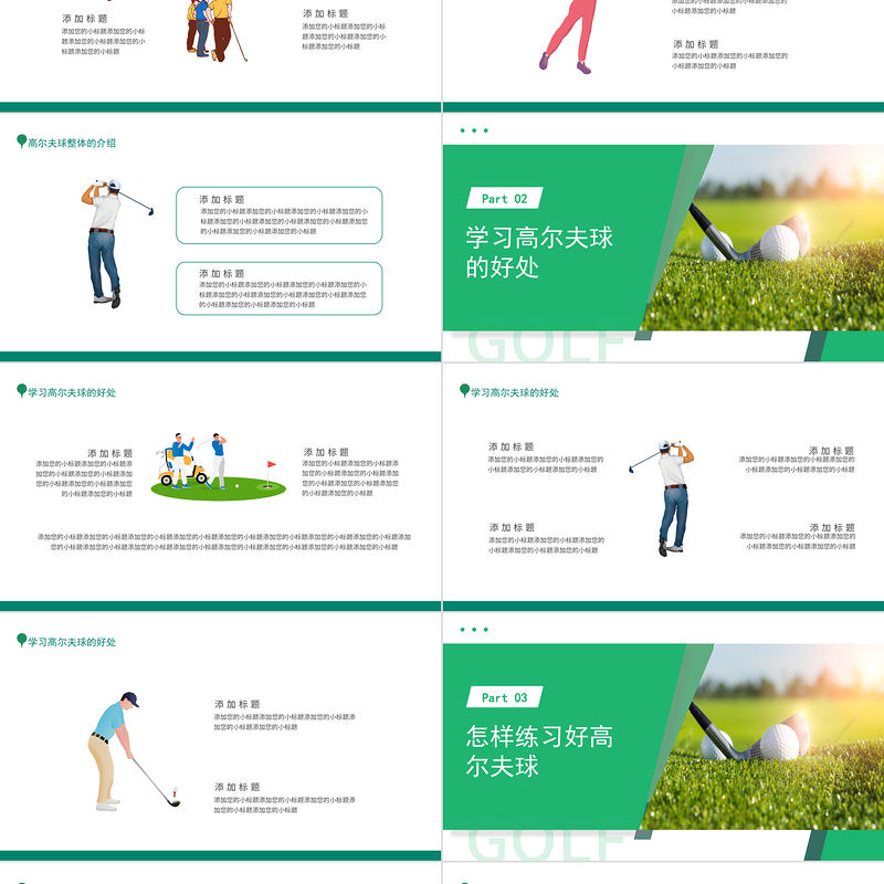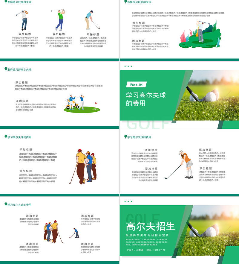 2022高爾夫招生宣傳PPT簡約卡通風品牌高爾夫球介紹招生宣傳課件模板