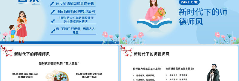 2023師德師風教育PPT中國風中小學教師師德師風教育課件模板下載