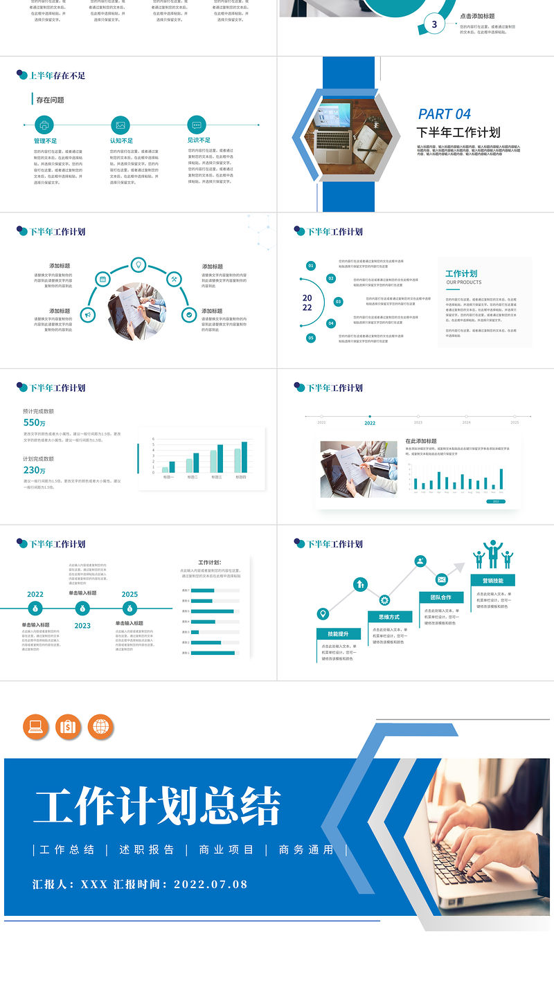 工作計劃總結匯報人:XXX 匯報時間:2022.07.08|工作總結 | 述職報告 | 商業項目 | 商務通用 |