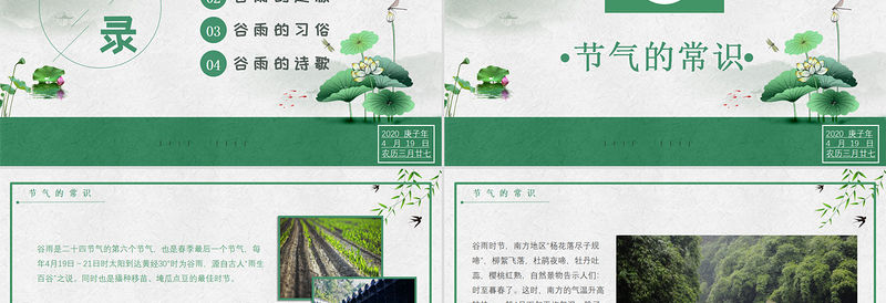 清新簡約二十四節氣之谷雨主題班會PPT模板