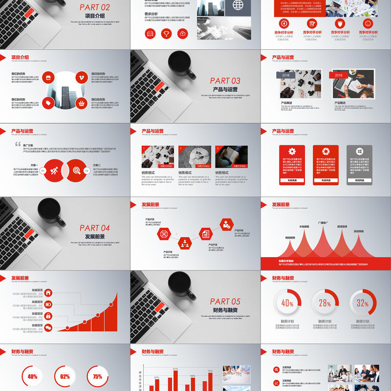 大氣商業策劃書創業計劃項目投資PPT模板幻燈片包含