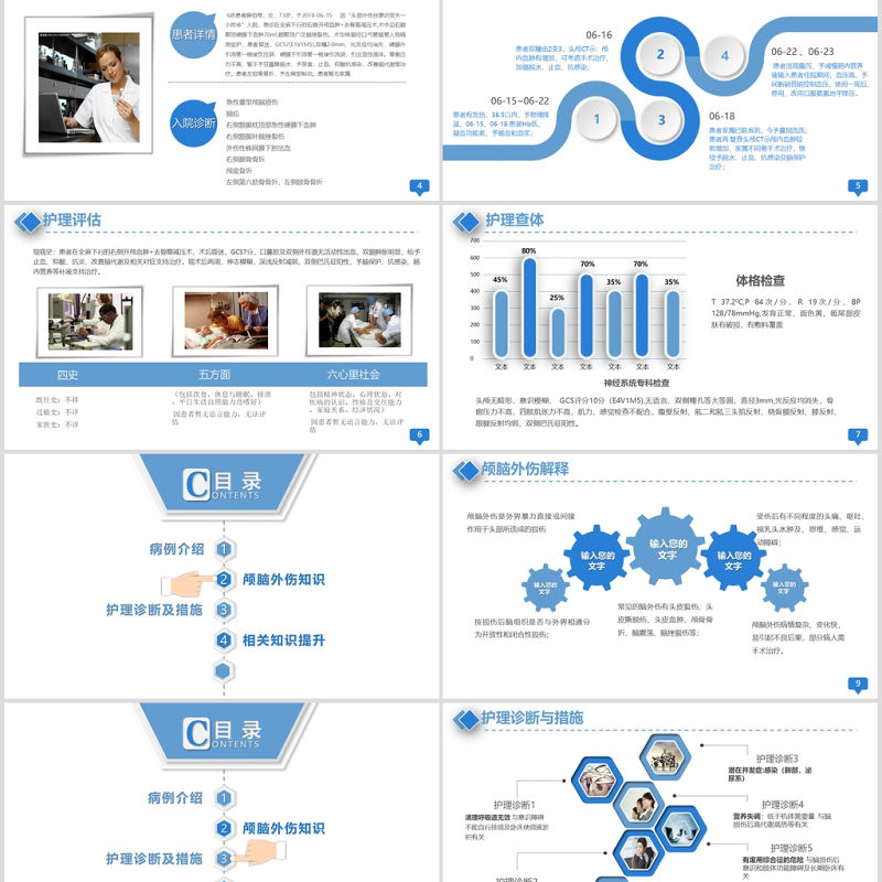醫(yī)療醫(yī)院顱腦外傷護理查房ppt模板 醫(yī)學醫(yī)療 護理 醫(yī)院 醫(yī)務 護理知識 護理培訓 患者 病人 醫(yī)療知識 醫(yī)療培訓 護理查房 醫(yī)院科室 醫(yī)學院培訓課件 Array