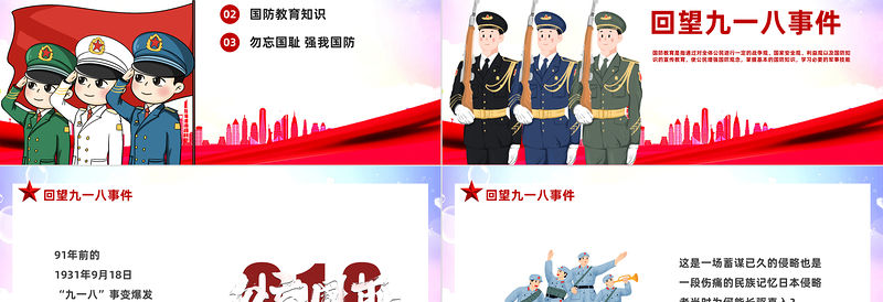 2023勿忘國恥強我國防PPT紅色黨政風九一八國防教育課件模板下載 Array