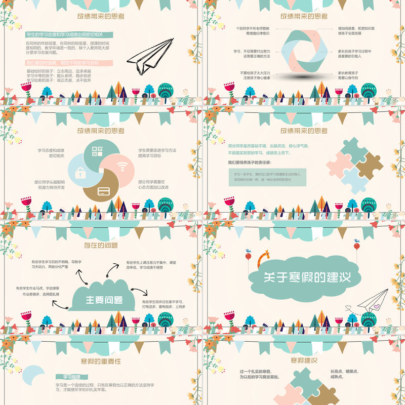 2018通用中小學期中期末家長會卡通手繪多彩糖果色家長會PPT模版