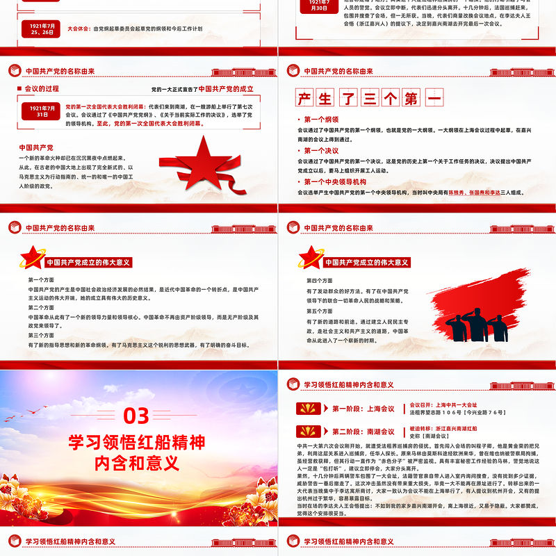 開天辟地、敢為人先的 首創(chuàng)精神 堅(jiān)定理想、百折不撓的 奮斗精神 立黨為公、忠誠為民的 奉獻(xiàn)精神學(xué)習(xí)領(lǐng)悟紅船精神內(nèi)含和意義